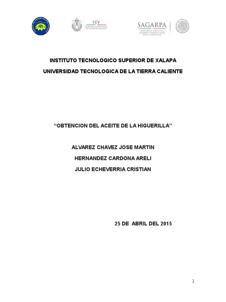 Actualmente - OBTENCION DEL ACEITE DE HIGUERILLA.