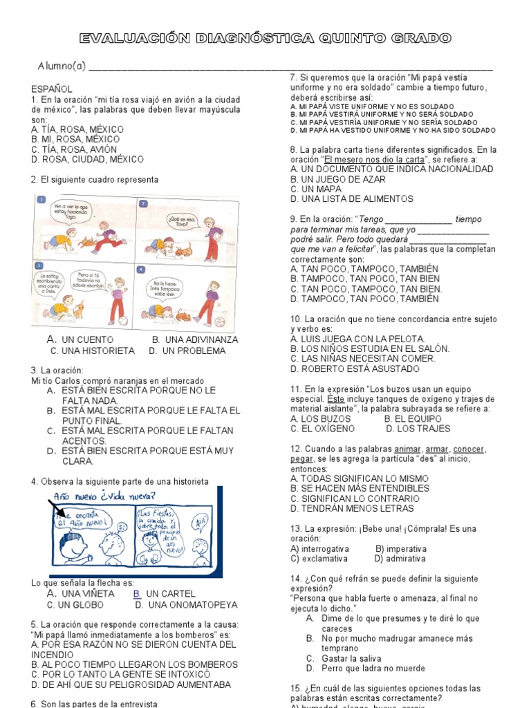 Nuevo Examen de diagnóstico del quinto grado del ciclo escolar 2017 2018